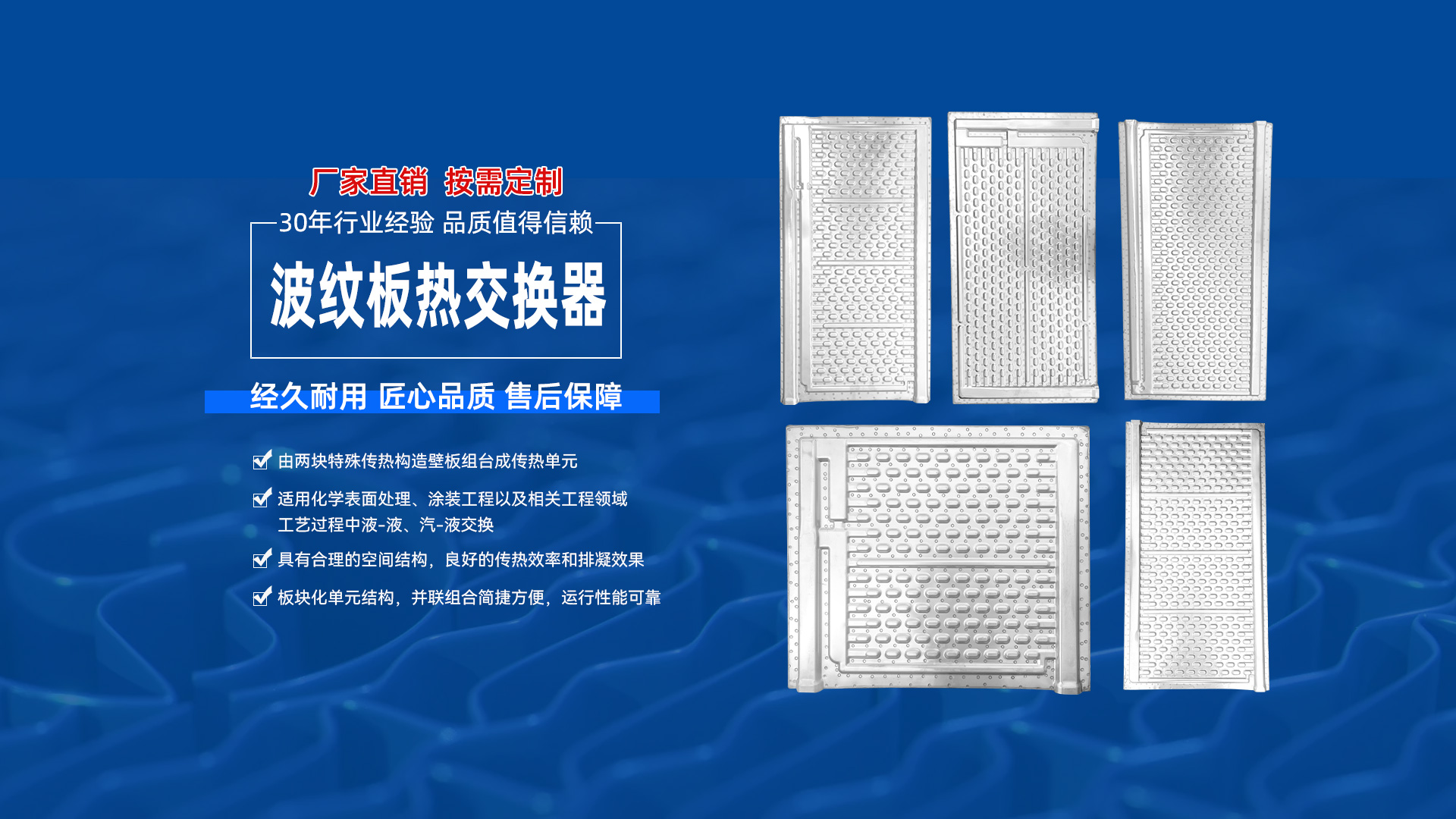 波紋板熱交換器具有合理的空間結(jié)構(gòu),良好的傳熱效率和排凝效果,板塊化單元結(jié)構(gòu),串并聯(lián)組合簡捷方便,運行性能可靠,是當(dāng)今熱傳遞領(lǐng)域中一種新穎傳熱單元。